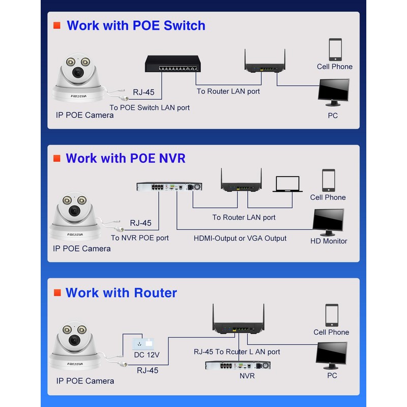 - 【Work with POE NVRs 】this 5MP IP camera Works with PoE NVR,supports Open Network Video Interface protocol to connect with other NVR,and work with Blue Iris and iSpy.This home security ip camera has a secure SSL/HTTPS connection, CE certification, FCC certificate, and is firmware updatable; We support 30-day unconditional refund and exchange, 3-year warranty period and lifetime tech support