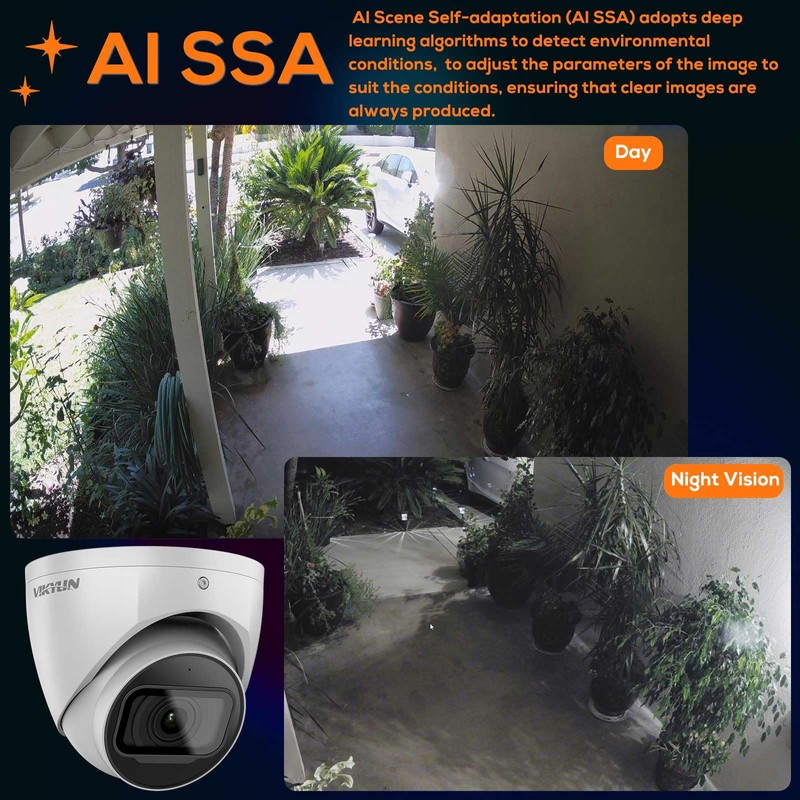 • Multi-scene Adaptation:AI SSA uses deep learning algorithms to detect environmental conditions such as rain, fog, backlighting, low light, and flickering so that image parameters can be adjusted to suit the environmental conditions and ensure clear images. Starlight technology and a large aperture lens also enable the camera to capture clear and vivid images even in low light conditions.
