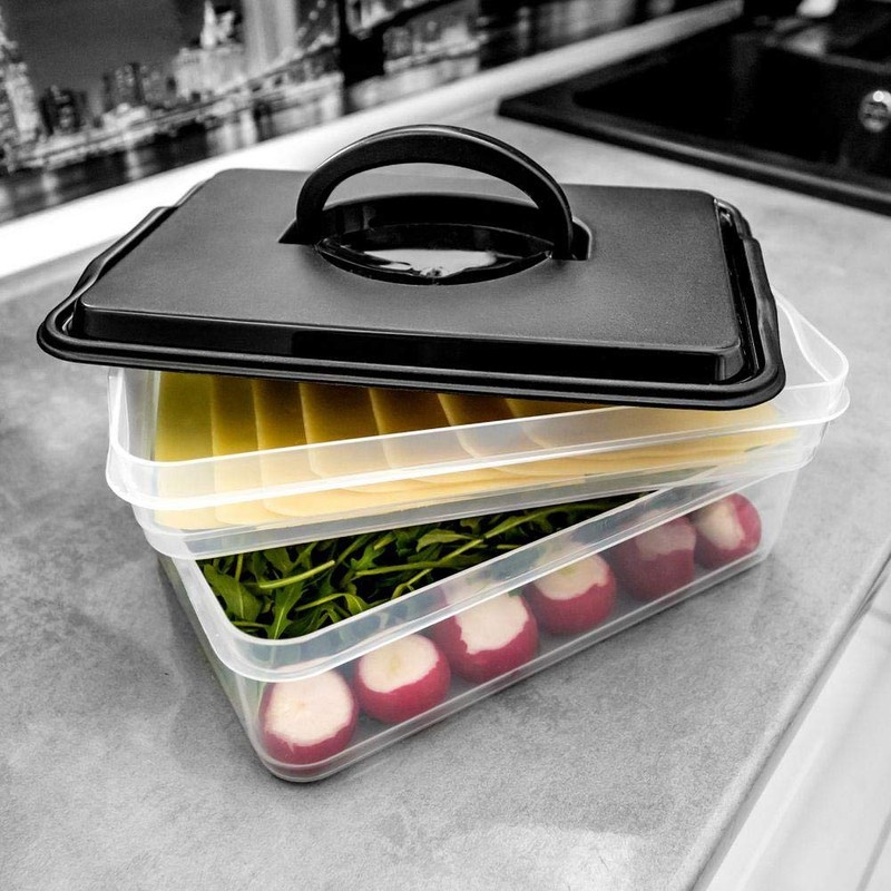 - Ein praktischer 2-teiliger Behälter zur Aufbewahrung von Wurstaufschnitt, Käseaufschnitt usw. Dank ihm werden wir mehrere Arten von Produkten zur Hand haben.
