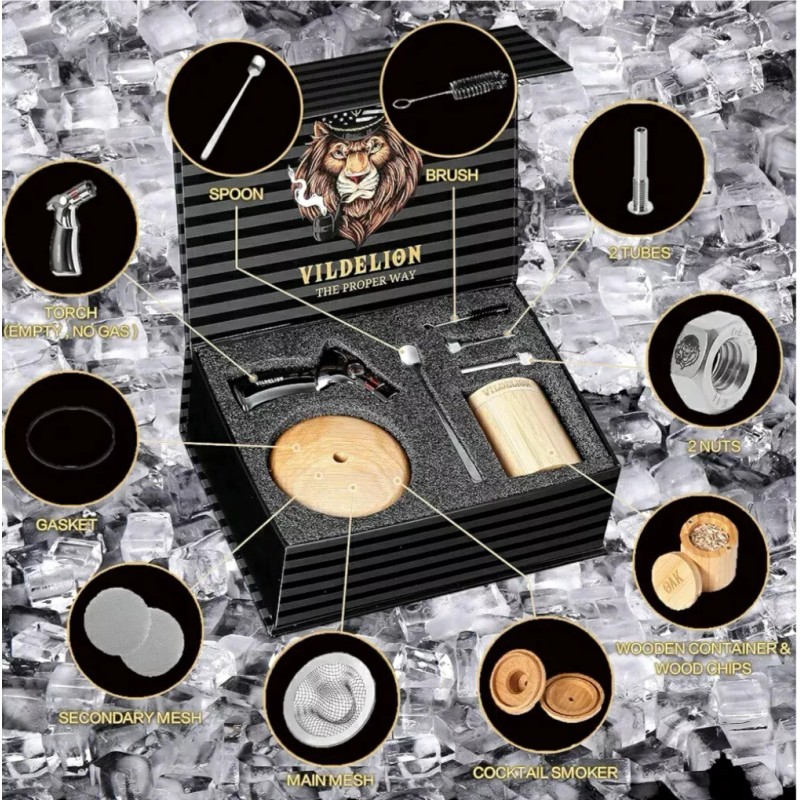 Vildelion Blow in Smoker, Vildelion Cocktail Smoker Kit with Torch Dry Aged Oak Chips New!