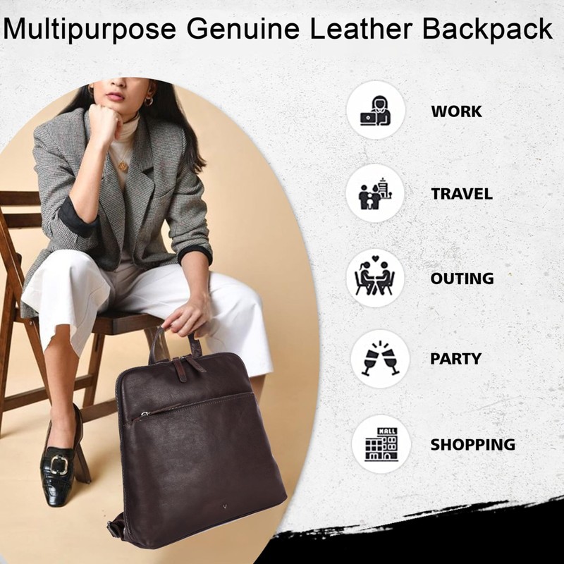 VILENCA HOLLAND Genuine Leather Backpack for Women - 12.5 Inch with Adjustable Shoulder Strap - Stylish and Durable (Chestnut)