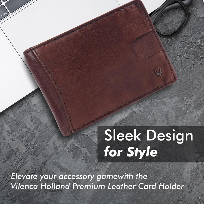 VILENCA HOLLAND Unisex Genuine Leather RFID-Blocking Card Holder: Sleek Design for Style, Functionality & Ultimate Security, Brown, Sleek and Minimalist