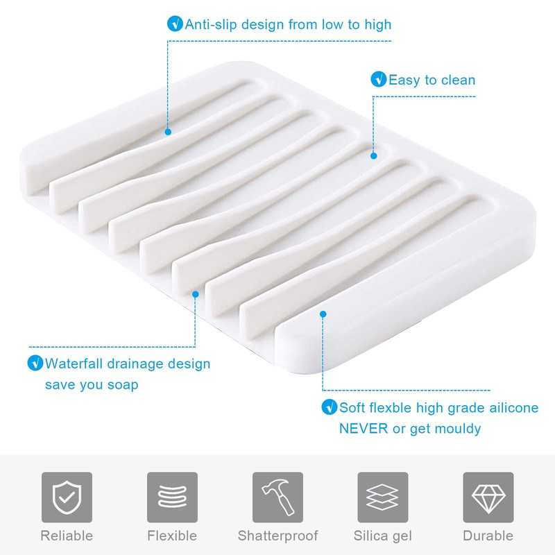 - Material Duradero y Resistente: Esta jabonera está fabricada con silicona duradera, lo que elimina preocupaciones relacionadas con el óxido. Su construcción resistente garantiza una larga vida útil.