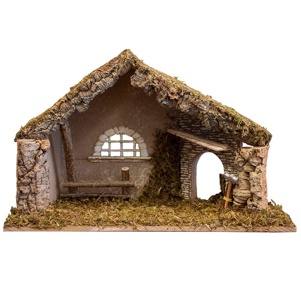 VILLAGE GIFT IMPORTERS Nativity Creche Stable | 12" Tall and 19" Wide | 2 Styles | Realistic Moss Hay Wood and Fabric | Made in Italy (Saw and Sticks)