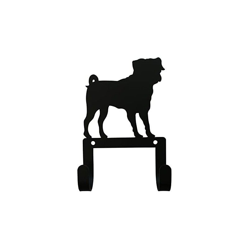 Village Wrought Iron WH-LC-327 6.25 Inch Pug - Leash and Collar Wall Hook, Black