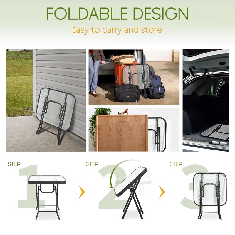 - SPACE-SAVING: With foldable design, this table offers convenient storage and portability, make it easy to set up and take down. Whether you're hosting a weekend brunch or enjoying drinks with friends, provides a perfect spot to gather and socialize