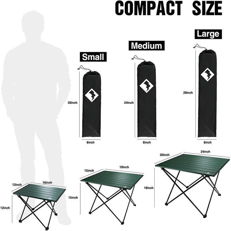 Ultra-light for Easy Portability: Our folding camp table's top and frame are all made of aluminum, so it's lighter than another comparably-sized wooden camp table, only 2.05lb, light enough to carry anywhere. Folds into the included carry bag. This small foldable table can easily fit in the back of a car, RV, motorcycle, or backpack.