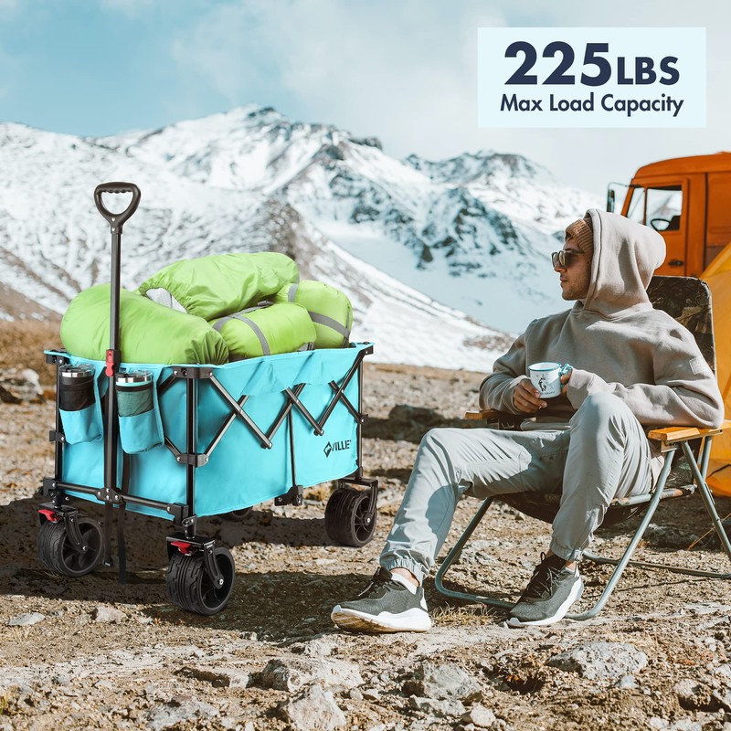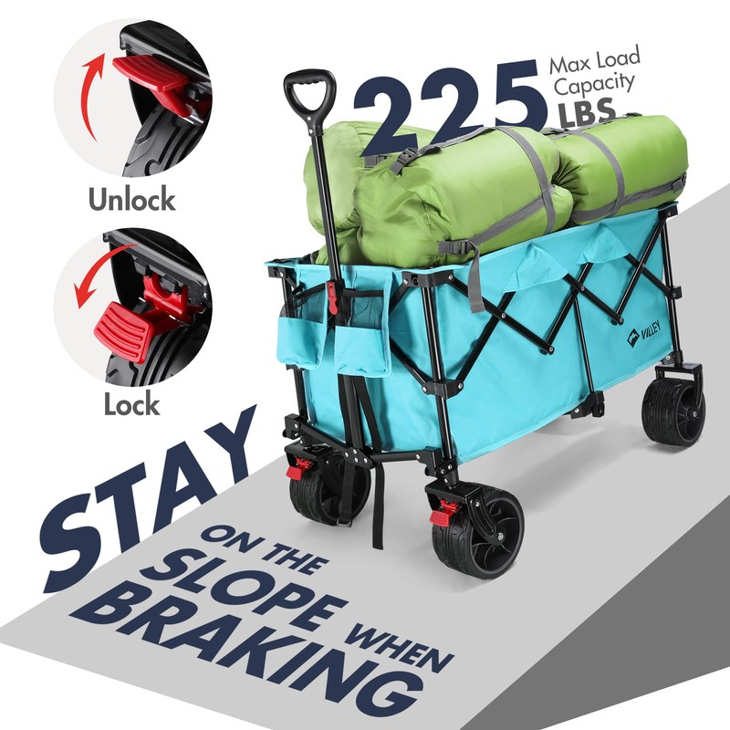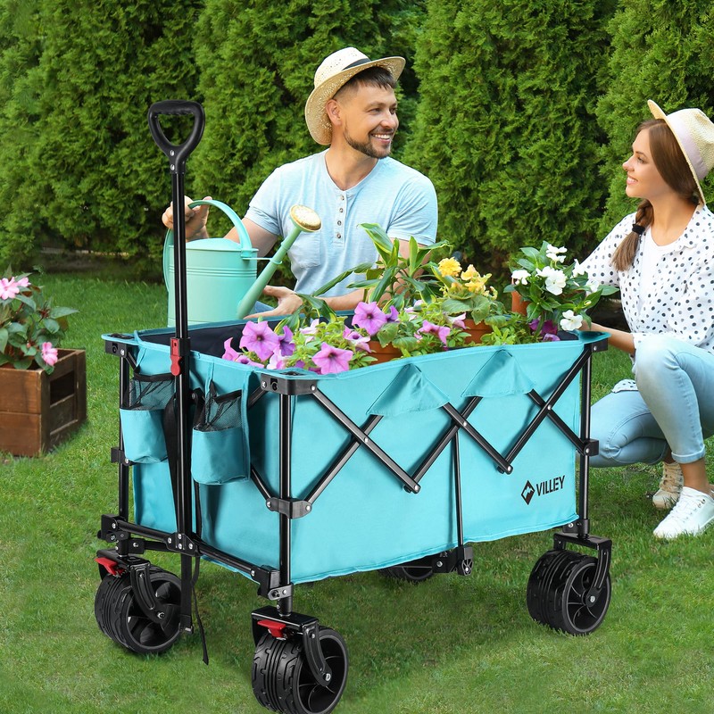 - No Assembly Need & Thoughtful Service: Our utility wagon is cleverly designed with a fully collapsible construction and is super easy to set up and fold down in a matter of seconds. VILLEY is committed to providing strict product quality assurance and a complete customer service experience. If you have any questions about the transaction, please contact us and we will get back to you as soon as possible