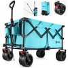 VILLEY Collapsible Folding Wagon with Big Wheels, All Terrain Beach Wagon Cart Heavy Duty Foldable, Enlarged 225lbs Capacity, Portable Utility Garden Cart with 2 Cup Holders and Brake, Blue