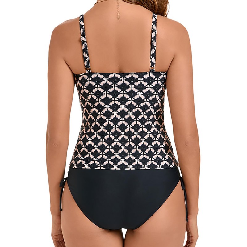 - Classic tankini with soft bra, colourful tops and black pleated bikini briefs. Special and stylish design makes you fashionable, charming and chic, makes your shape look large, elegant and sexy