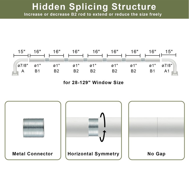 • Seamless Hidden Connectors for Smooth Gliding: Features invisible metal connectors that join 1-inch fix tubes without gaps, allowing the room darkening curtains to slide effortlessly. The modular design lets you extend or shorten the rod by adding/removing fixed tubes . No snagging, no misalignment—just a flawless, continuous look with adjustable length flexibility