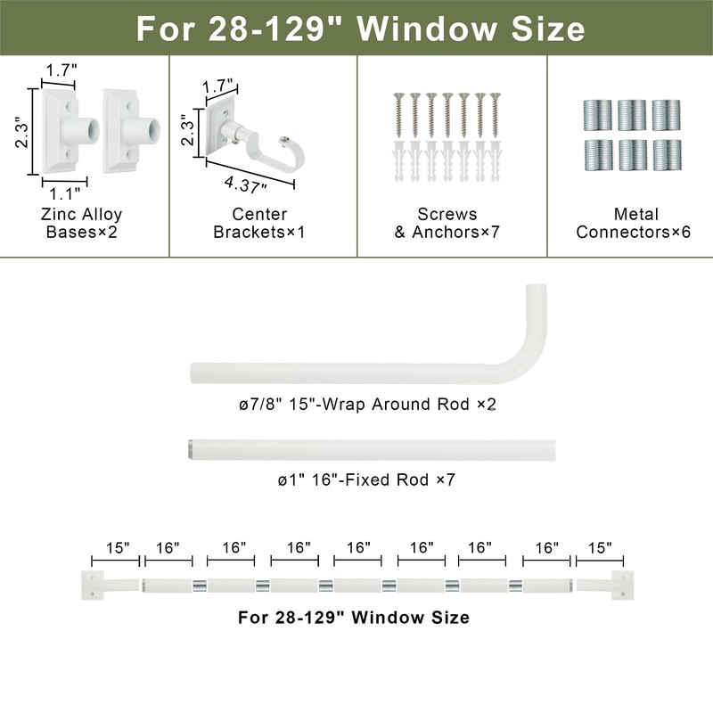 Vimayta Wrap Around Curtain Rod for 28 to 129 Inches Window, Splicing Structu...