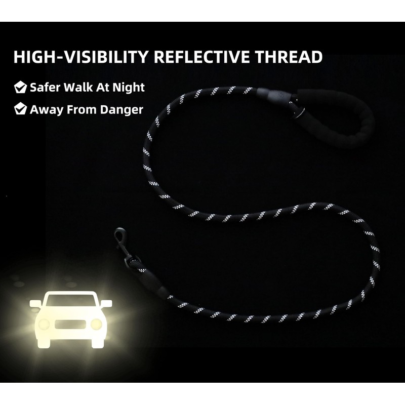 - Highly visibility at night, highly reflective threads dog leashes keep you both safe and high visibility on your late-evening walks at night