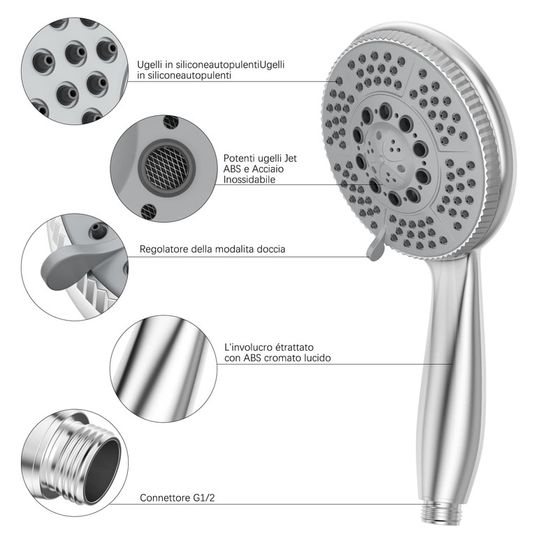 - Verchromtes Material C Der wassersparende Duschkopf besteht aus langlebigem ABS-Material. Integrierter Duschk?rper mit Multilayer-D1se, verchromter Oberfl?che, die wie neu gl?nzt