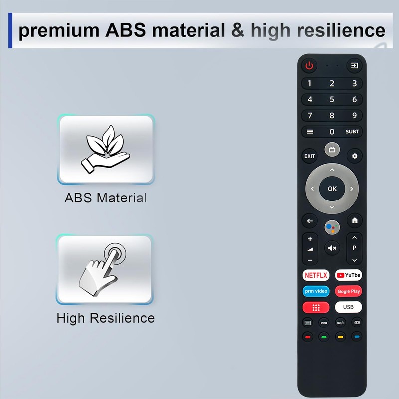 • Material: The remote control is made of ABS material and the buttons are made of soft rubber; thanks to the excellent printing technology, the text will not fall off even after a long time.