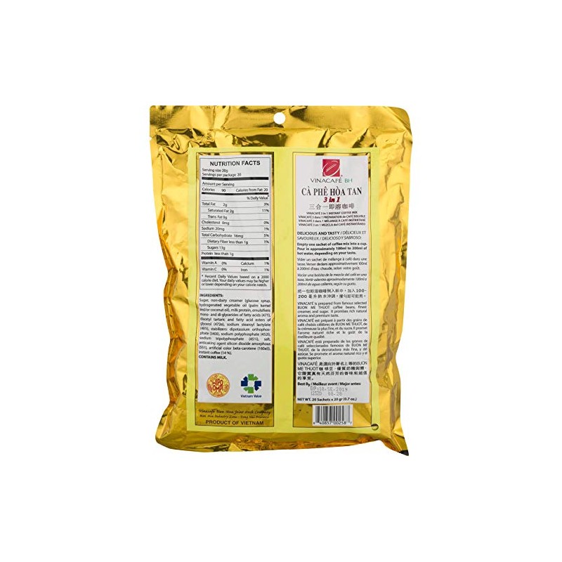 Vinacafe 3 in 1 Instant Coffee Mix, 20 Sachets (6 Pack)