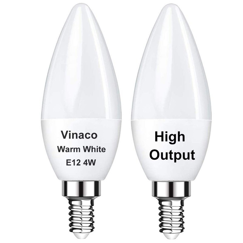 Vinaco E12 LED Bulb, 2 Pack E12 Candelabra Bulb 40 Watt Warm White 3000K, High Brightness 400LM & 25000+ Long Lifespan E12 Bulb, E12 Candelabra Base, Light Bulb Great for Ceiling Fan Light Bulb