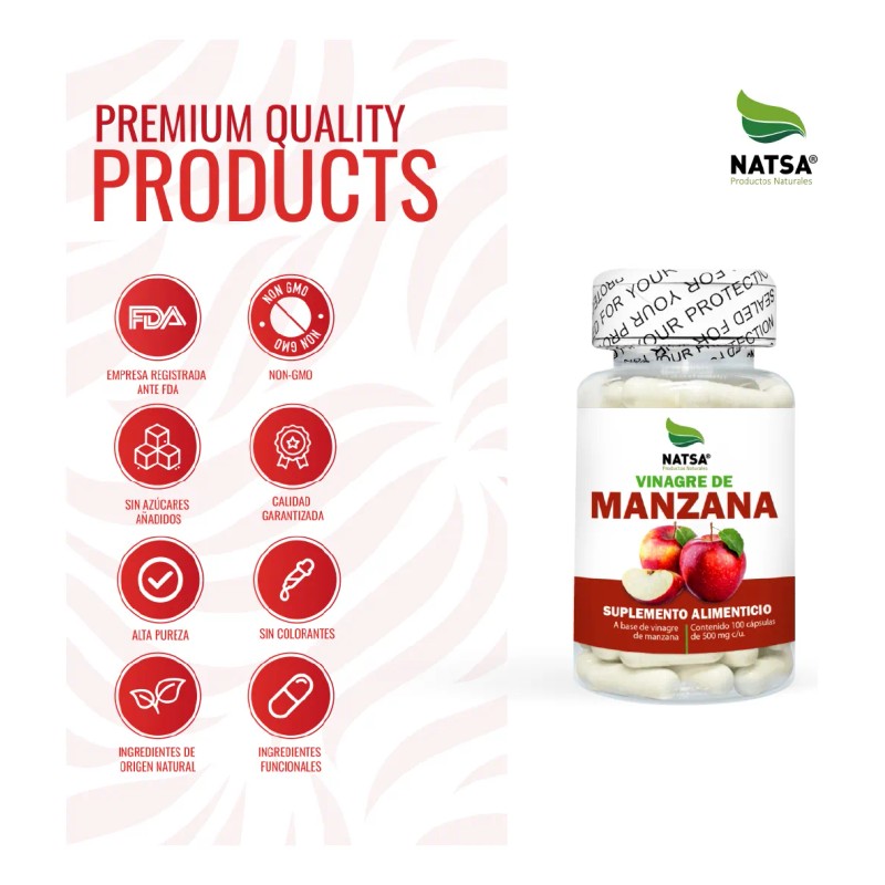 Vinagre De Manzana 100 Cápsulas Calidad Premium Natsa