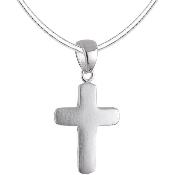 The cross is matted. The pendant comes with a matching snake chain made of the finest sterling silver (925), which is made in Italy