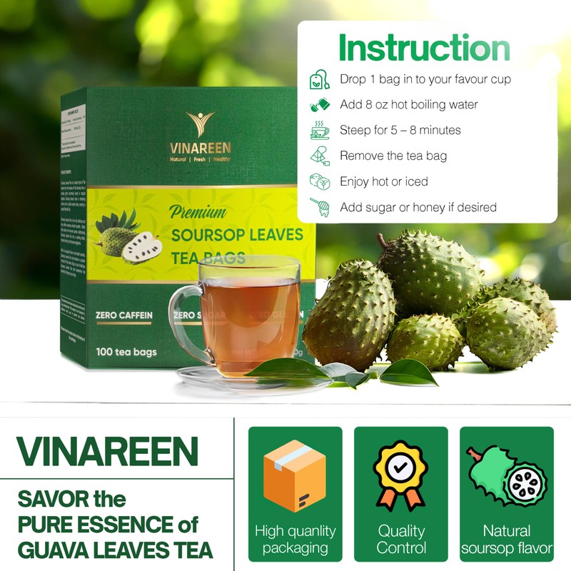 VINAREEN Soursop Leaves, 50 Count – Sugar-Free, Caffeine-Free, Gluten-Free So...