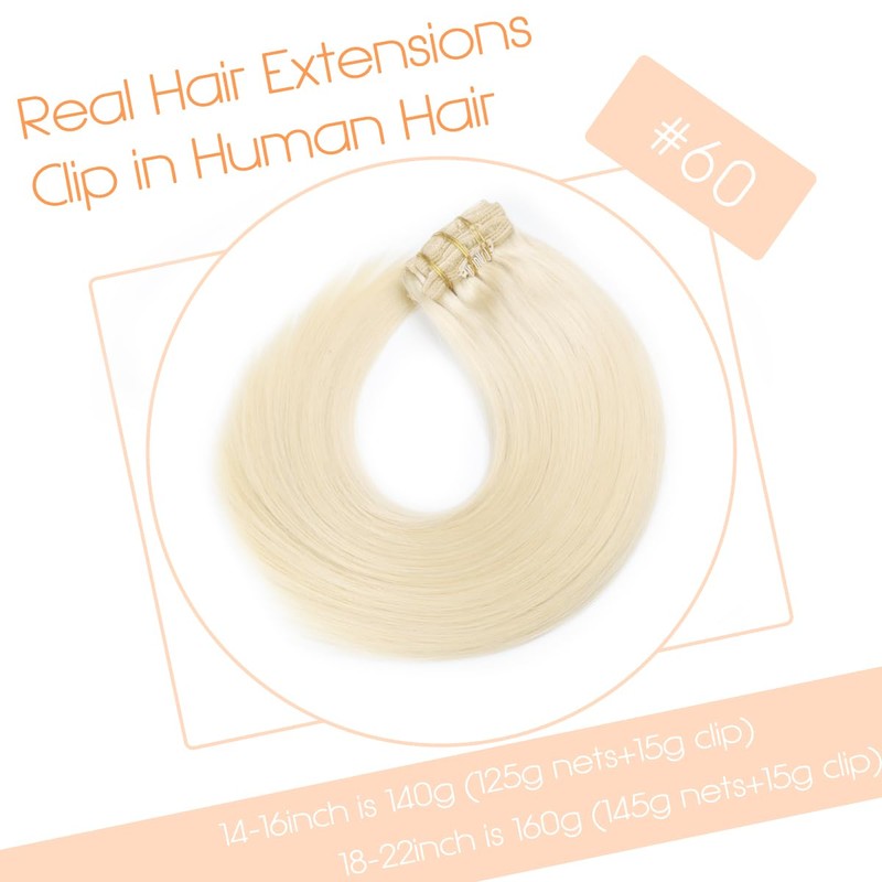 VINBAO Double Drawn Clip in Hair Extensions Rallonge Cheveux Humain Extension Soft Remy Clip in Human Hair Color 60 Platinum Blonde 20 Inch 160 Gram 7 Pcs No Shedding No Tangle Clip in Hair Extensions (7C#60-20Inch)