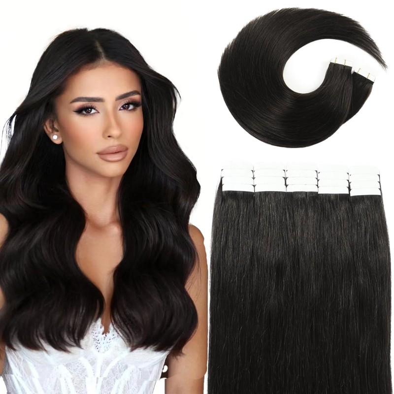 VINBAO Human Hair Extensions Tape in Hair Extensions 16 Inch Natural Black Hair Extensions for Fashion Women Double Weft 50 Gram 20Pcs Long Straight Real Human Hair Extensions Tape in (tape#1B-16Inch)