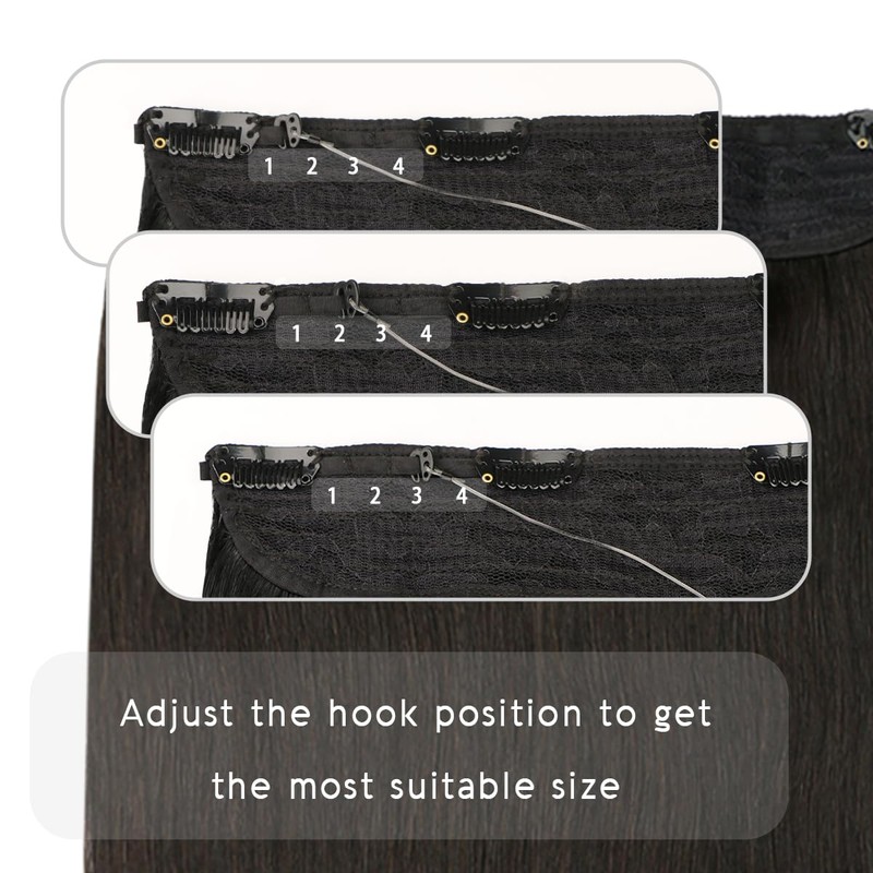 - 【SOFT & SOLID OF WIRE】 Each pack of wire hair has two wires. Fish line which is more solid and hard. Upgraded wire hair extensions can adjust the length of the fish line according to the position of the hooks with 4 durable clip ins, which can be firmly fixed on the head and not easy to move, you can even remove the clips if you prefer a clip-free experience