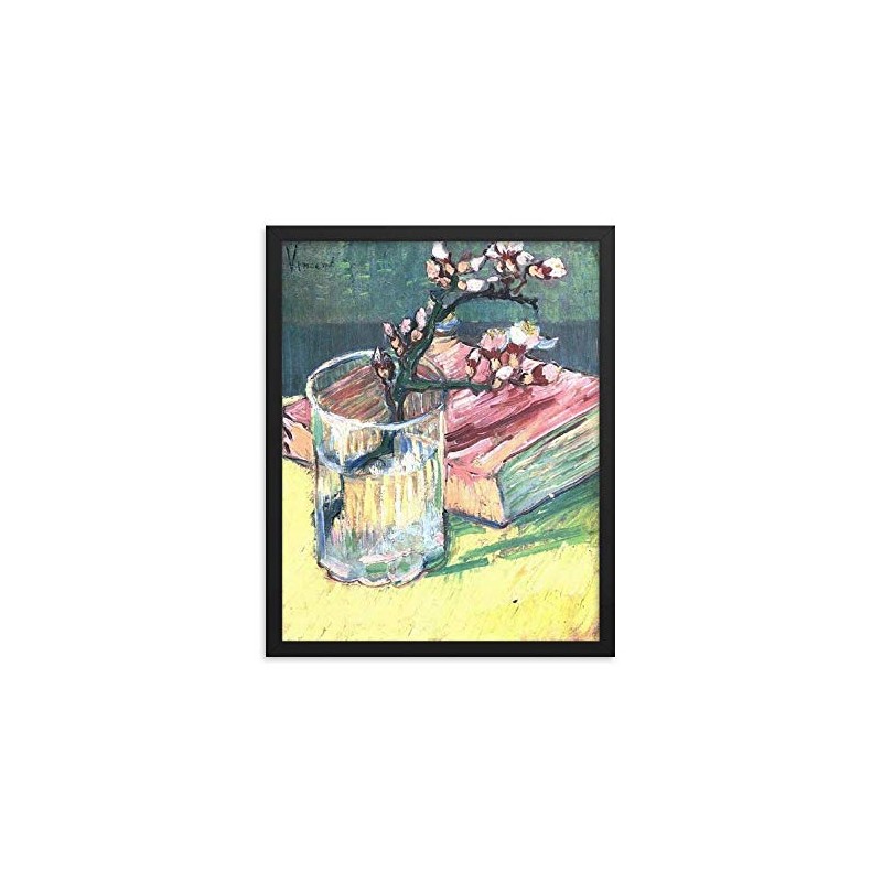 Vincent Van Gogh's Blossoming Almond Branch in a Glass with a Book 1806 - Enhanced Matte Paper Framed Poster (16X20) - Black Frame