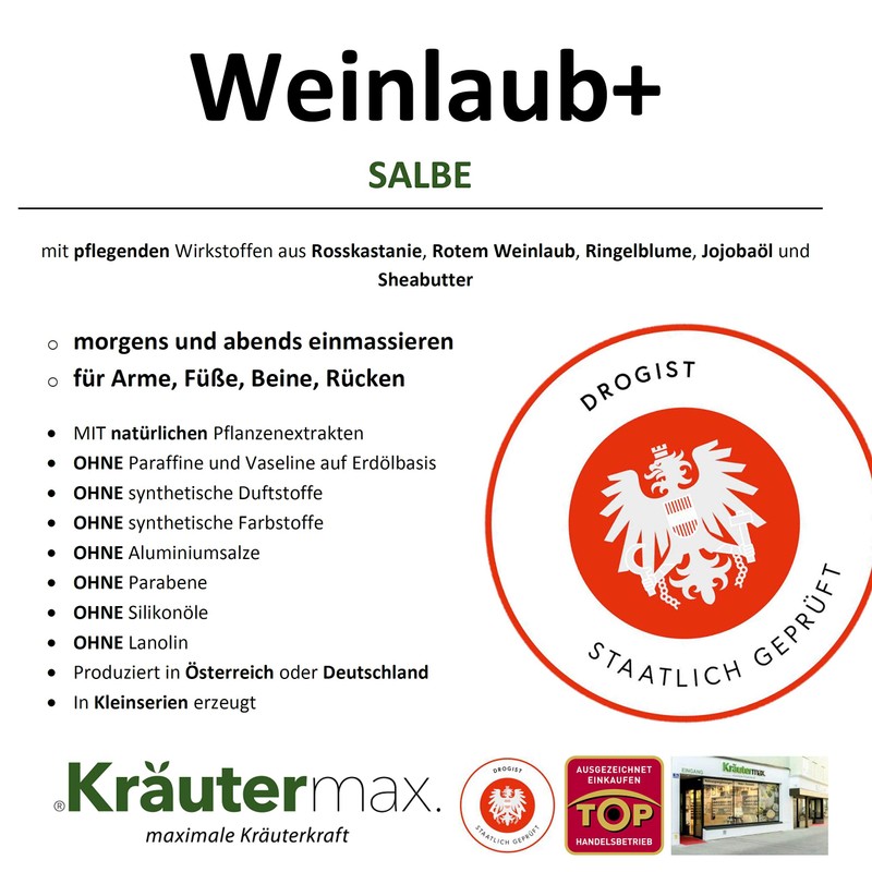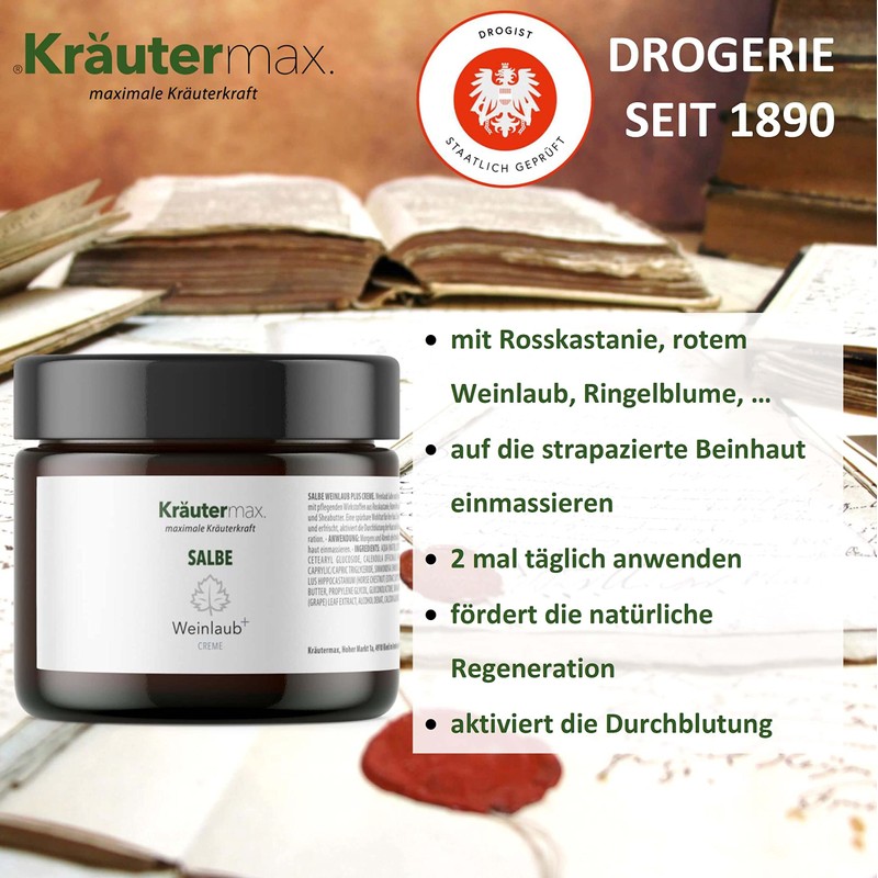 • Proven: With Kräutermax you will receive natural vine leaves cream made from high-quality raw materials from vine leaves against the most diverse complaints