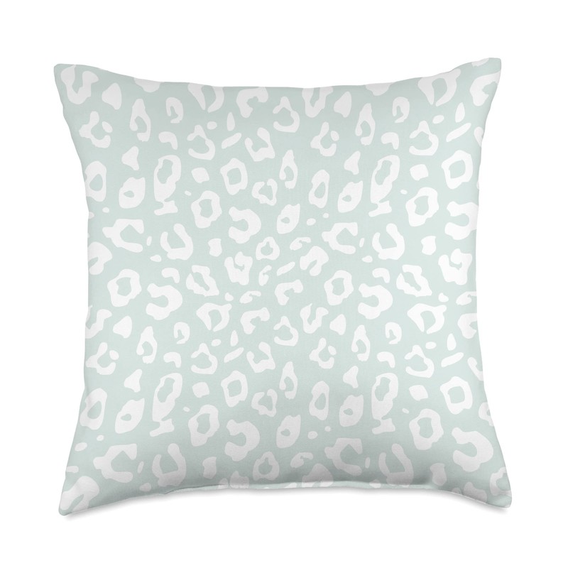 Vine Mercantile Chic Pastel Mint Green & White Leopard Animal Print Pattern Throw Pillow, 18x18, Multicolor