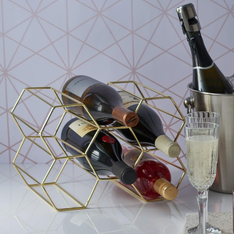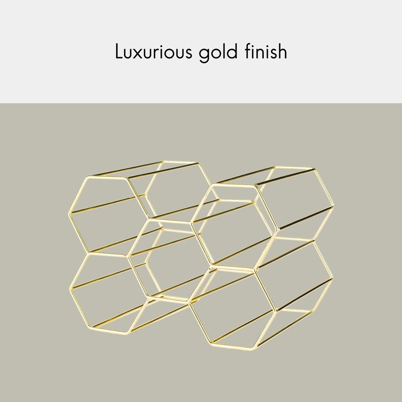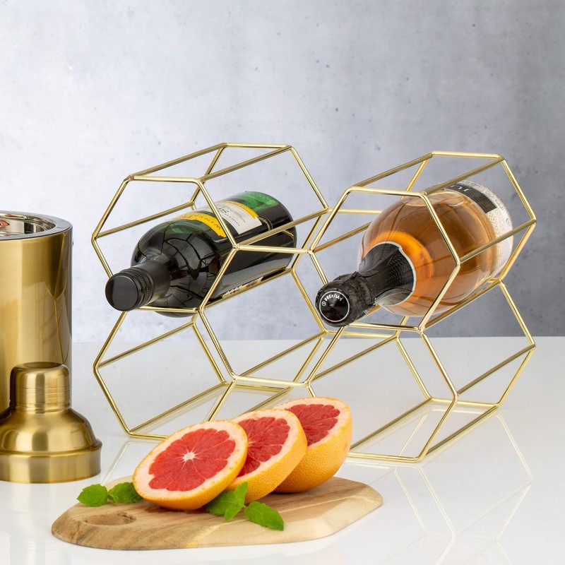 - WINE RACK | Add a dash of glamour to your kitchen top or bar counter with the Viners honeycomb golden bottle rack. With its lustrous finish, this hexagonal wine rack will bring a classy yet minimalist style to any home.