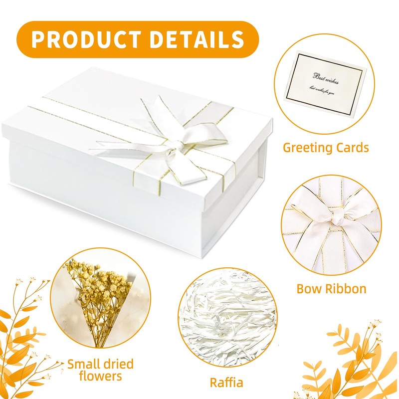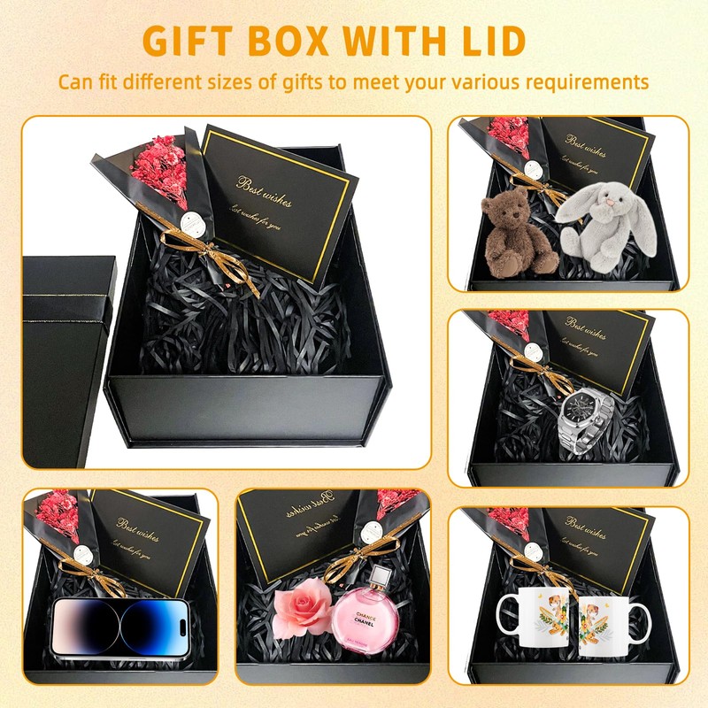 - 【Wide range of uses】This elegant gift box is suitable for storing gifts or small items such as snacks, crafts, jewellery and more. This empty gift boxes is perfect for Valentine's Day, weddings, Christmas, birthday parties, anniversaries and other gift occasions, which can make your items shine and stand out. It is the ideal gift wrapping box for you.