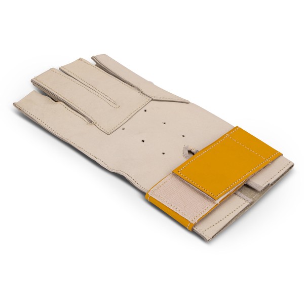 - An additional leather reinforcement is sewn under the individual fingers to adequately distribute the large forces on the throwing handle
