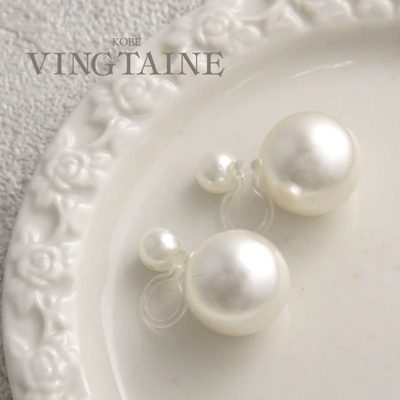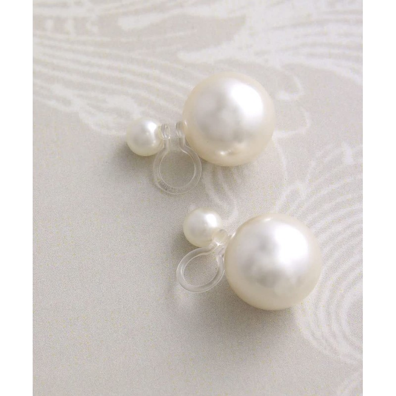 VingTAINE E2149 Non-Hole Earrings, Double Pearl, M, Resin, Metal Allergy, 2-Way, Acrylic