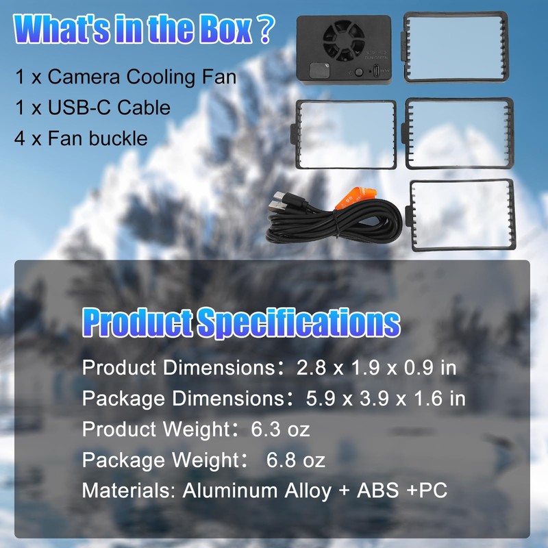 - 【Type C Power Interface】The camera external cooling fan is powered by type C interface, simply plug in to use, featuring intelligent temperature control for user convenience.
