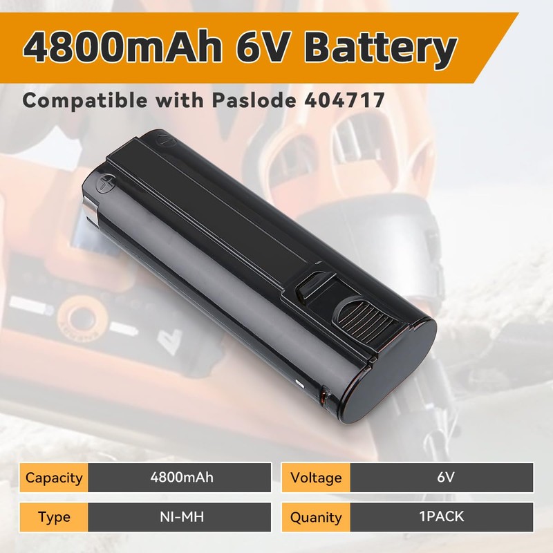 - Battery Type:4800mAh; Battery type: NI-MH; Voltage: 6V. Replacement for Paslode battery 404717 BCPAS-404717 404400.