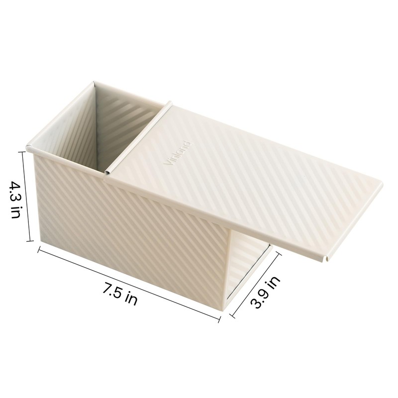 - Carbon Steel 1-Pound Bread Pan - Vinland Pullman Bread Pan is made of heavy-duty, reliable specification carbon steel. Non stick coating, does not release polytetrafluoroethylene at high temperatures, so you can focus on cooking delicious dishes. Applicable temperature upper limit: 220 ° C/428 ° F.