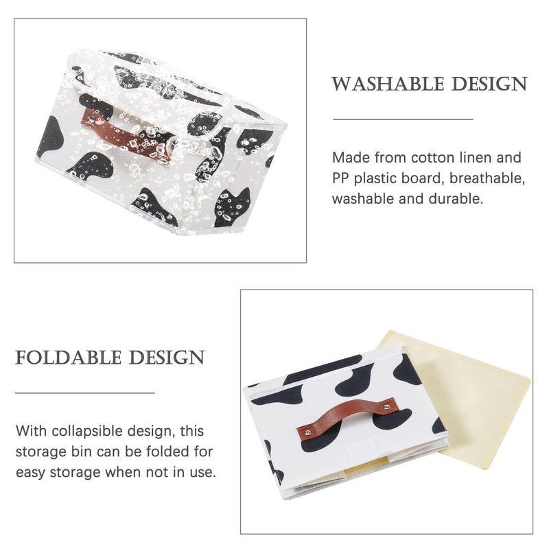 VinneGenzz Storage Bin with Lid Cow Print Cute Fabric Storage Basket Box with Faux Leather Handles PP Plastic Board Foldable Washable Lidded Cotton Linen Closet Shelf Organizer Container (Small Size)