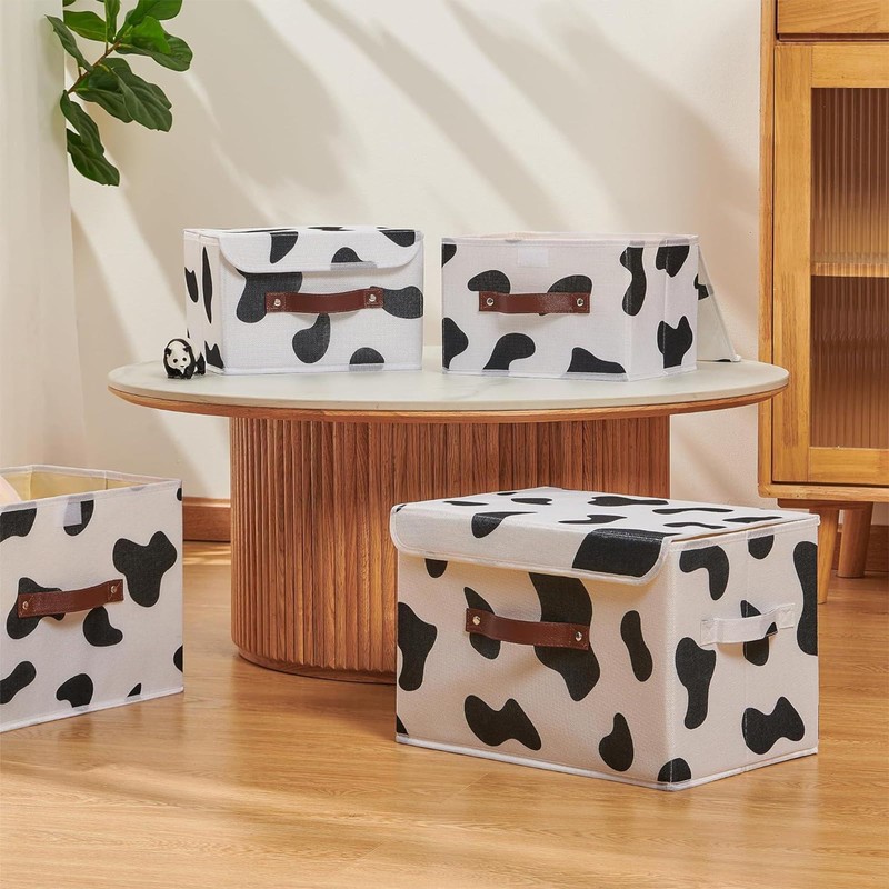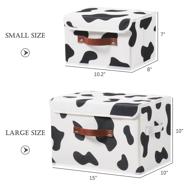 - Package Includes: 1 cow print storage bin measuring 10.2" long, 8" wide and 7" high