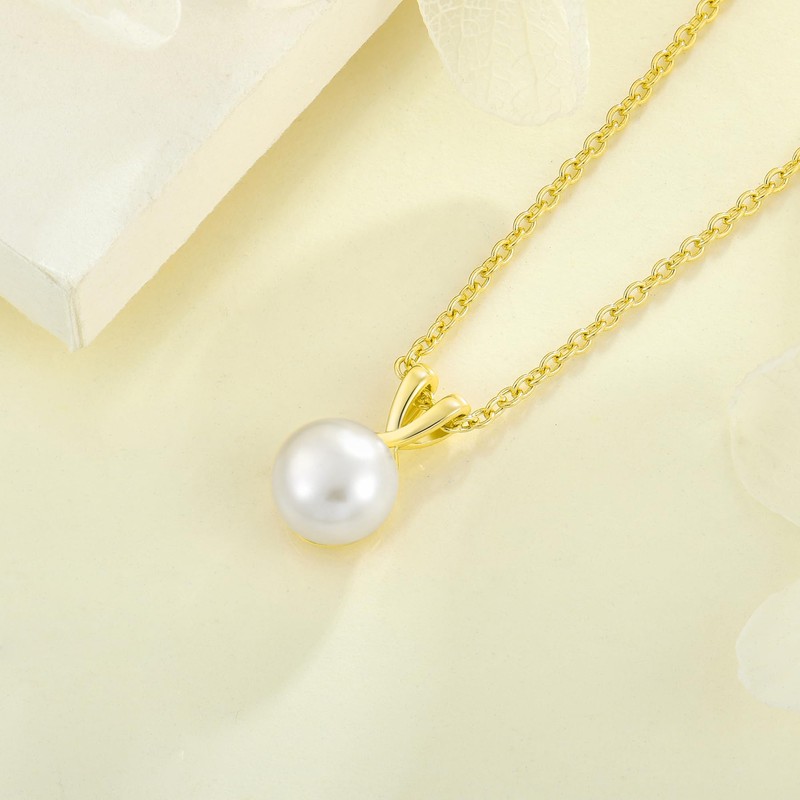 Vinoya Freshwater Cultured Pearl Pendant Necklace 925 Sterling Silver Simple Pearl Necklace for Women Yellow Gold Plated Single Pearl Necklace for Her