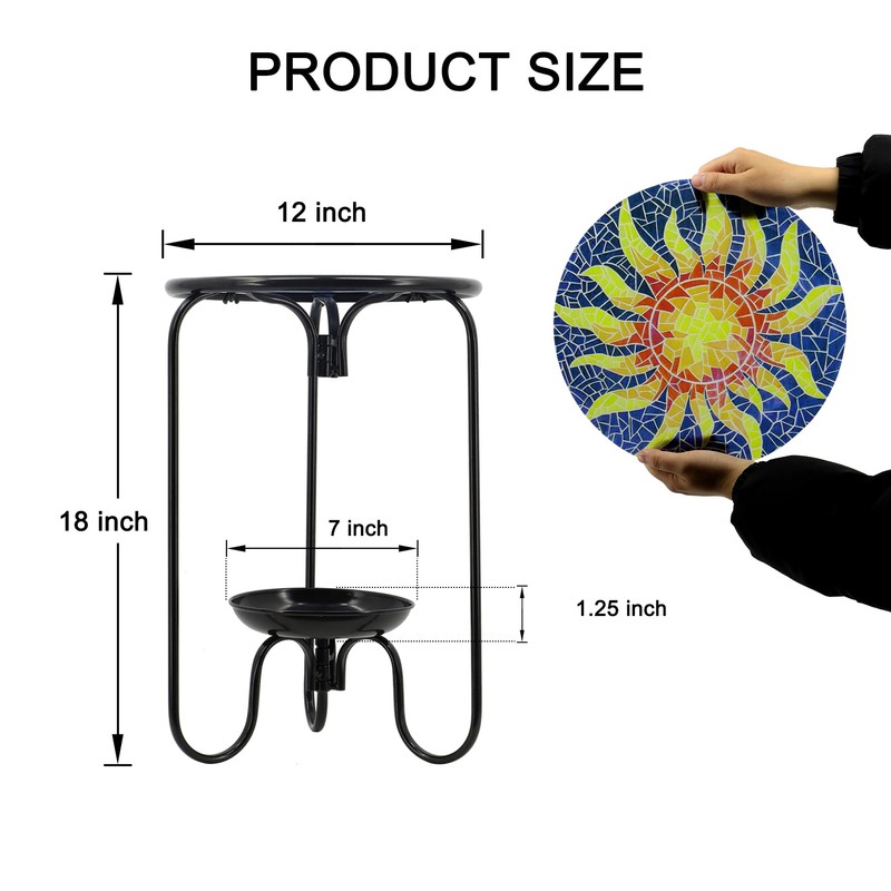 - 【Elegant Design with Functional Details】The table boasts a stunning mosaic sun-patterned glass top and uniquely styled legs for a modern aesthetic. A 7-inch metal tray at the base adds functionality, providing space for small items or potted plants, blending beauty with practicality.