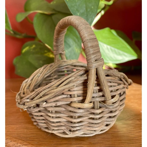 Vintage 1980's Wicker Basket w/ Handle Small Miniature 4"L X 3"W X 4.75"H