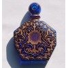 Vintage Blue Etched Faux Perfume Lucite Bottle Pendant Copper Details pnd066C