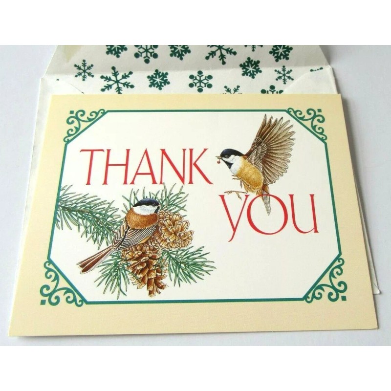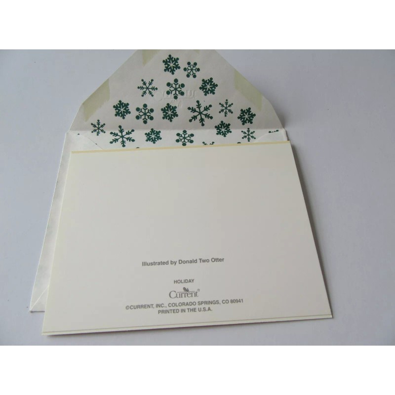 Vintage Christmas Card Blank Donald Two Otter Chickadees Pine Cones Current Inc
