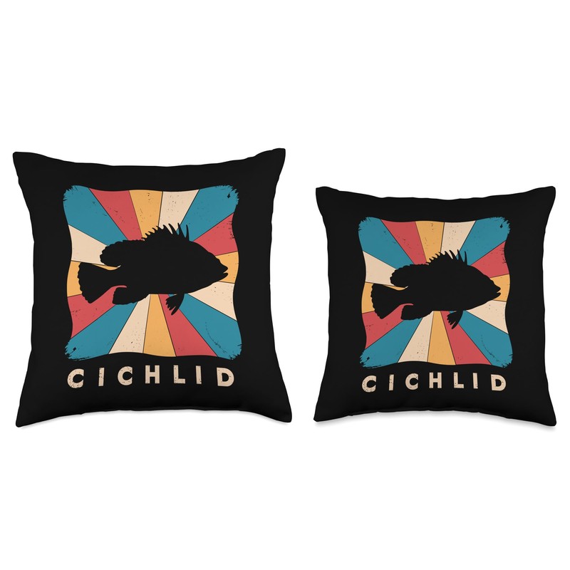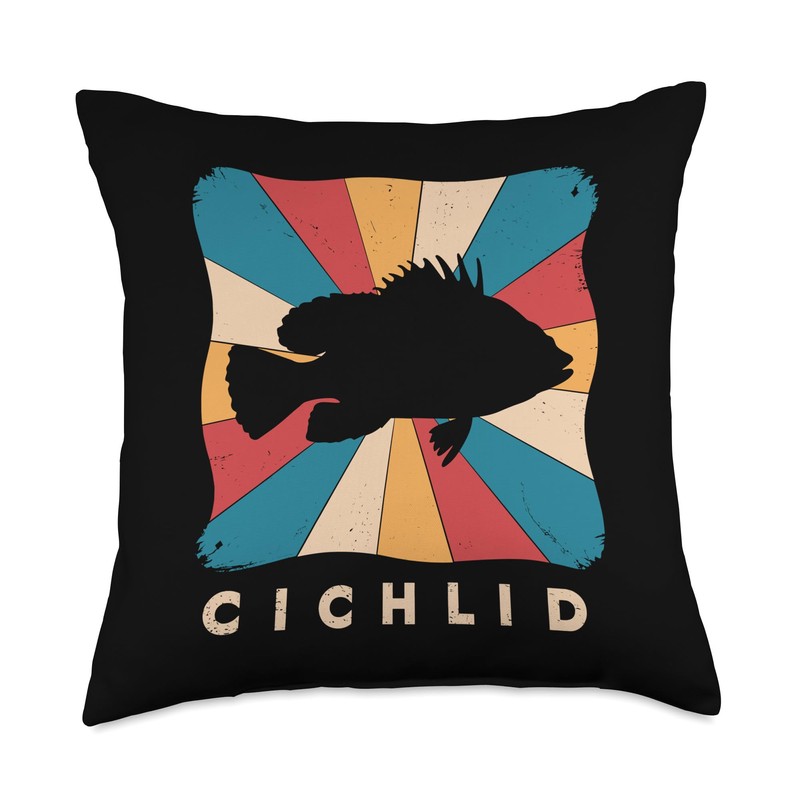 Vintage Cichlid Fish Lover African Cichlid Fish Aquarium Throw Pillow