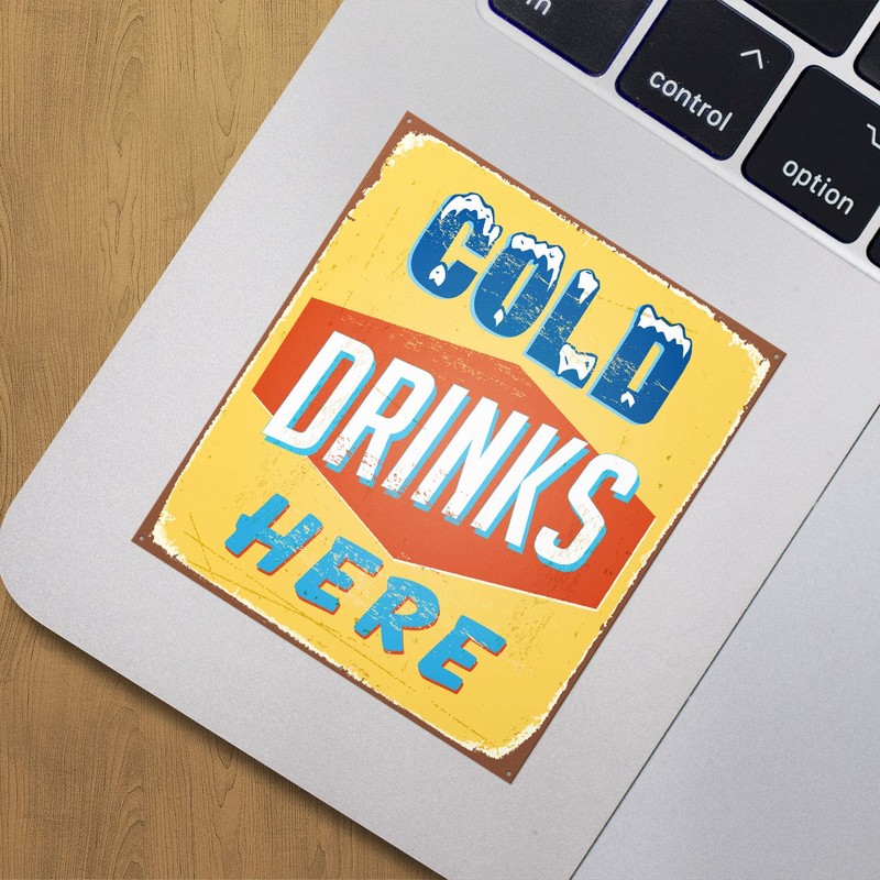 Vintage Cold Drinks Here Sticker | Car Bumper, Laptop, Water Bottle, Wall, Window Waterproof Vinyl Decal