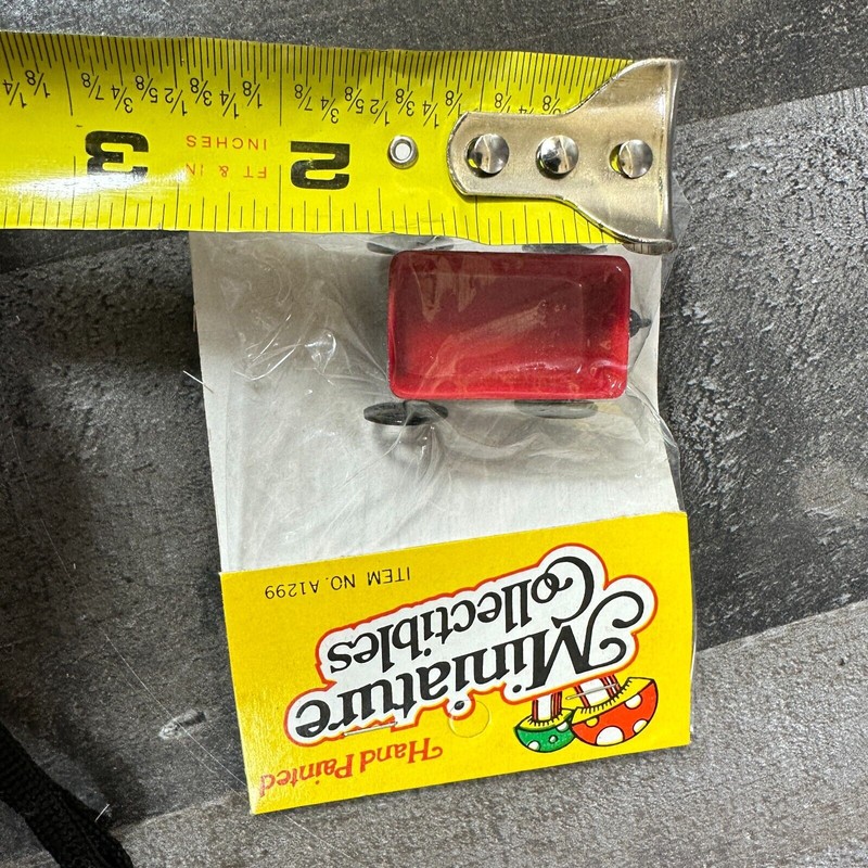 Vintage Dollhouse Miniature Wagon Red Wood with Black Wheels Taiwan Hand Painted