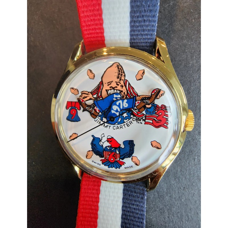 Vintage Jimmy Carter Watch w/band 1976 President Peanut Head Swiss Windup RARE