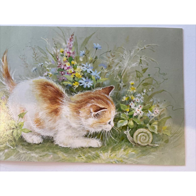 Vintage Kitten Snail Flowers Postcard Unposted Red Farm Studios