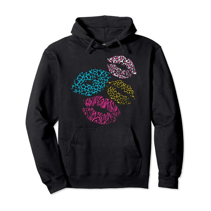 Vintage Leopard Print Lips 1980 Theme Party Eighties Pullover Hoodie